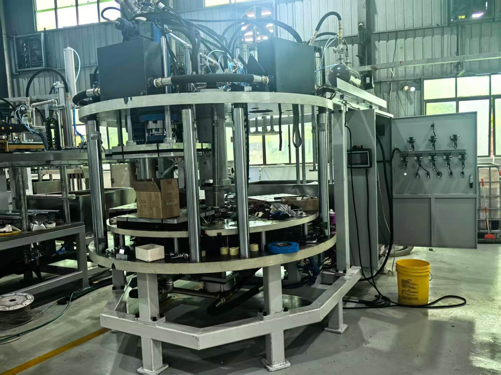 | 1.3, The main structure is made of #63 channel steel, welded by A3 folding, the surface (blue as basic color) is treated with plastic ejection. the whole structure is delicate and durable. | |||